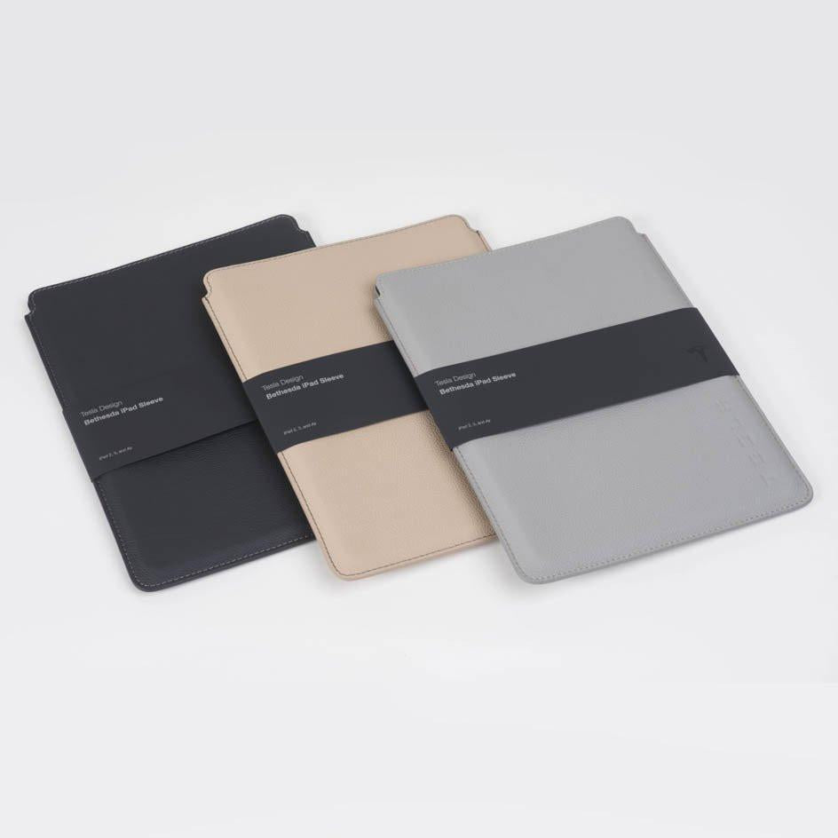 Simple elegance meets exceptional functionality. Our Bethesda iPad Sleeve is designed in true Tesla style for the true Tesla fan. This accessory is handcrafted from the same automotive-grade leather used for your Model S seats. The leather color choices of black, tan or gray match your car’s interior perfectly. The Bethesda iPad Sleeve is named after a Tesla Supercharger location in Maryland.
