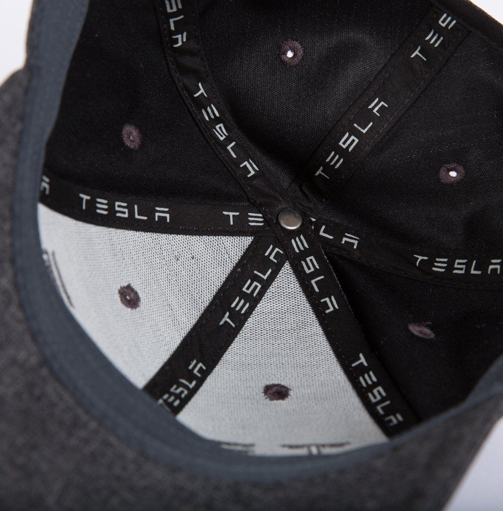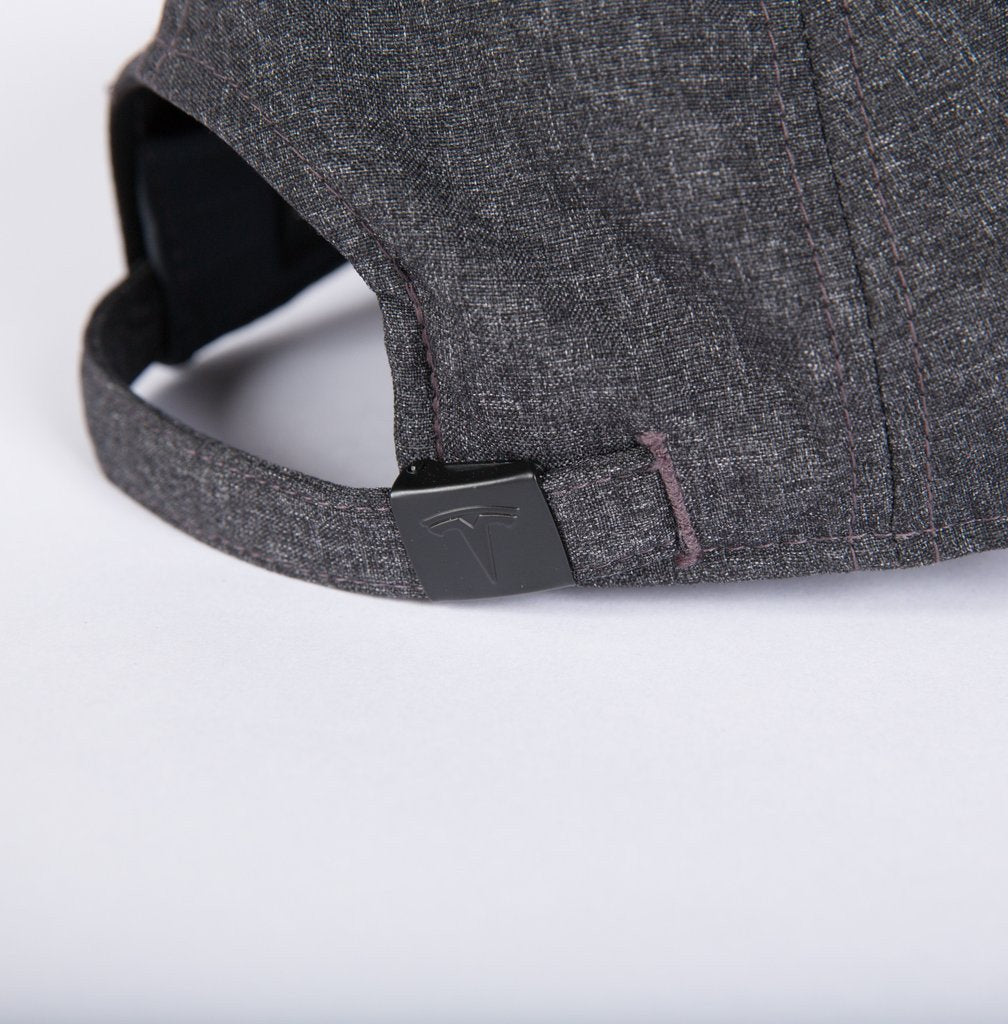 The Premium Worldmark Hat is constructed with style in mind. This hat features the Telsa Wordmark in gray on the front with an adjustable strap and a metal clasp on the back of the hat embossed with the Tesla T logo.  One size fits most.
